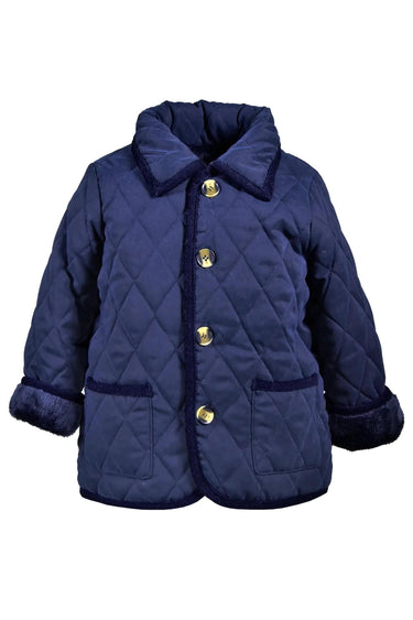 This quilted navy Barn Jacket comes lined with soft faux fur making it perfect for keeping your little one warm!