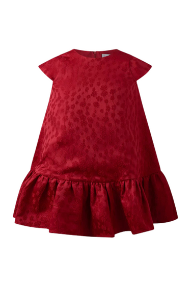 Rachel Riley - Red Petal Damask Drop Hem Dress