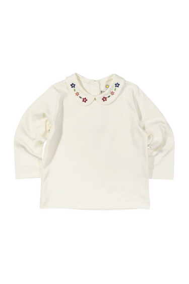 Florence Eiseman - Cream Long-Sleeve Blouse w/Embroidered Flowers
