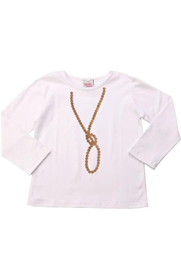 For days when extra accessories are necessary! This darling long sleeve shirt has a fabulous glittering gold necklace designed right into it. So cute your little one is sure to love it!