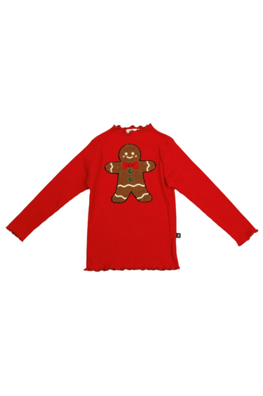 Petite Hailey - Red Gingerman Patched Ribbed Top