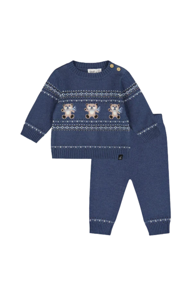 Deux Par Deux -BBY-Knitted Jacquard Sweater & Pant SET- Blue Gray W/Bears