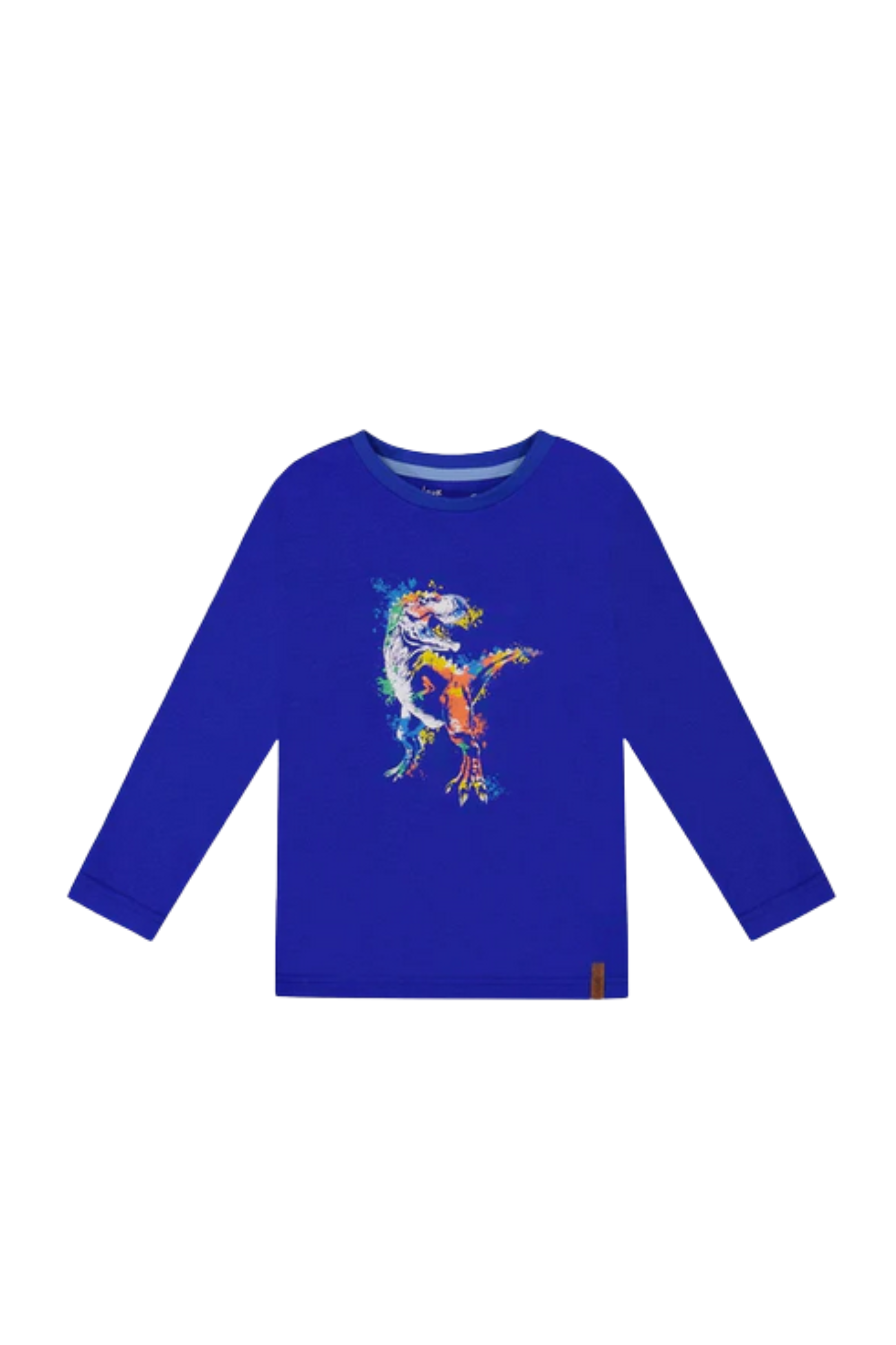 Freshen up his wardrobe with this colorful, playful dinosaur print top. With long sleeves and a crew neckline that make it easy to wear on its own or layer beneath a hoodie, this cotton jersey tee is sure to be a hit with any little dino lover.