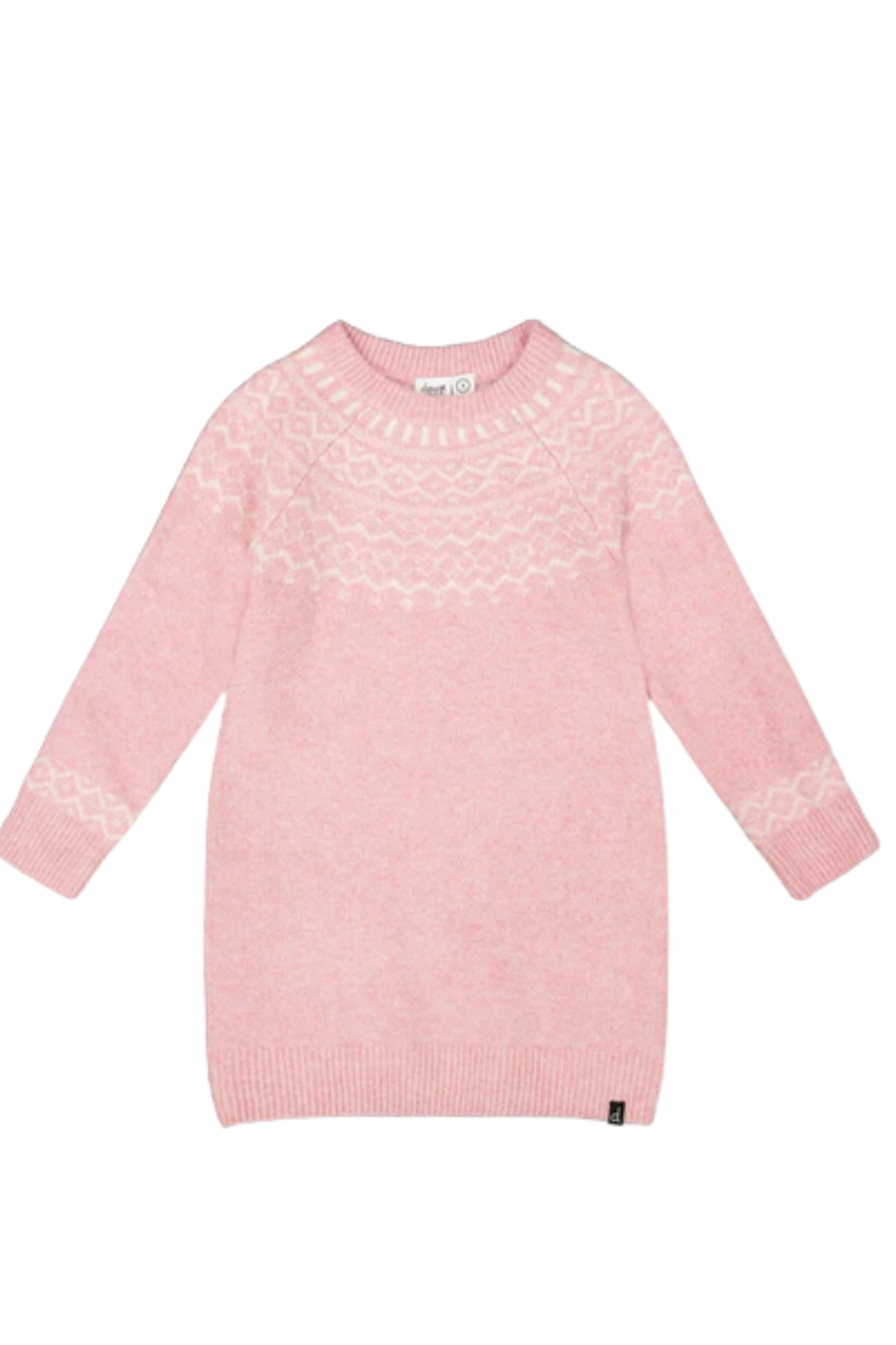 Deux Par Deux -TG-Knitted Dress W/ Norvegian- Dusty Pink