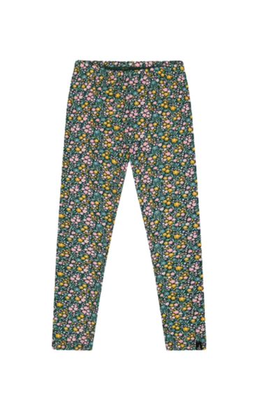 Sweet and cheerful, these Leggings Green With Flower Print are made for twirling, playing, and everything in between. These floral stretch pants are crafted from soft jersey with a comfy elastic waistband, complete with a delicate allover flower print. A joyful essential to mix and match with tops from our “Chesnuts In The Woods” collection.