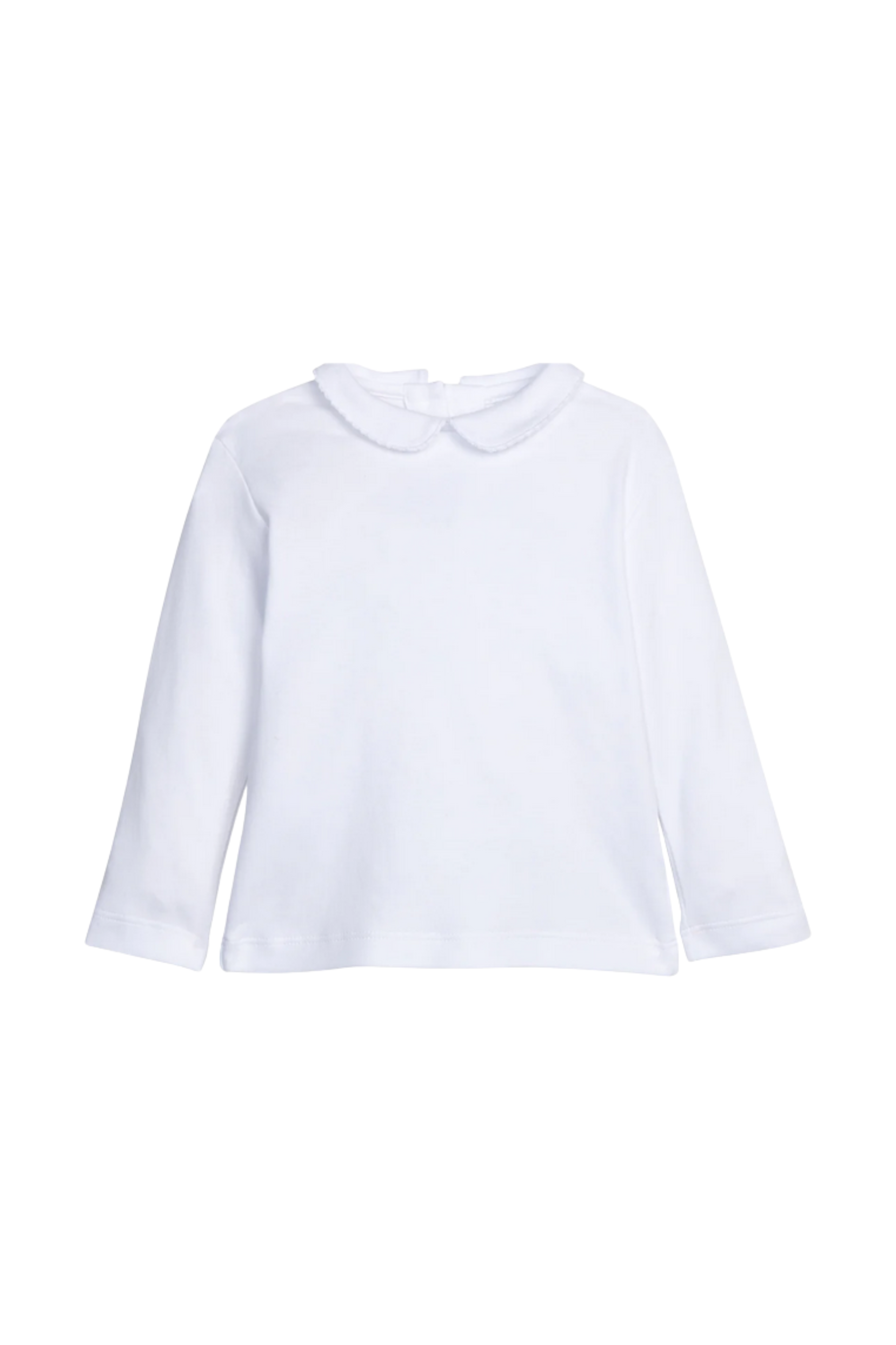 Your favorite year-round layering piece is here! Our Peter Pan Picot Shirt is made from the softest white cotton and features delicate white picot trim around the collar. This comfortable knit top is a great gift for mom and baby, and the simple silhouette makes it perfect for a monogram.