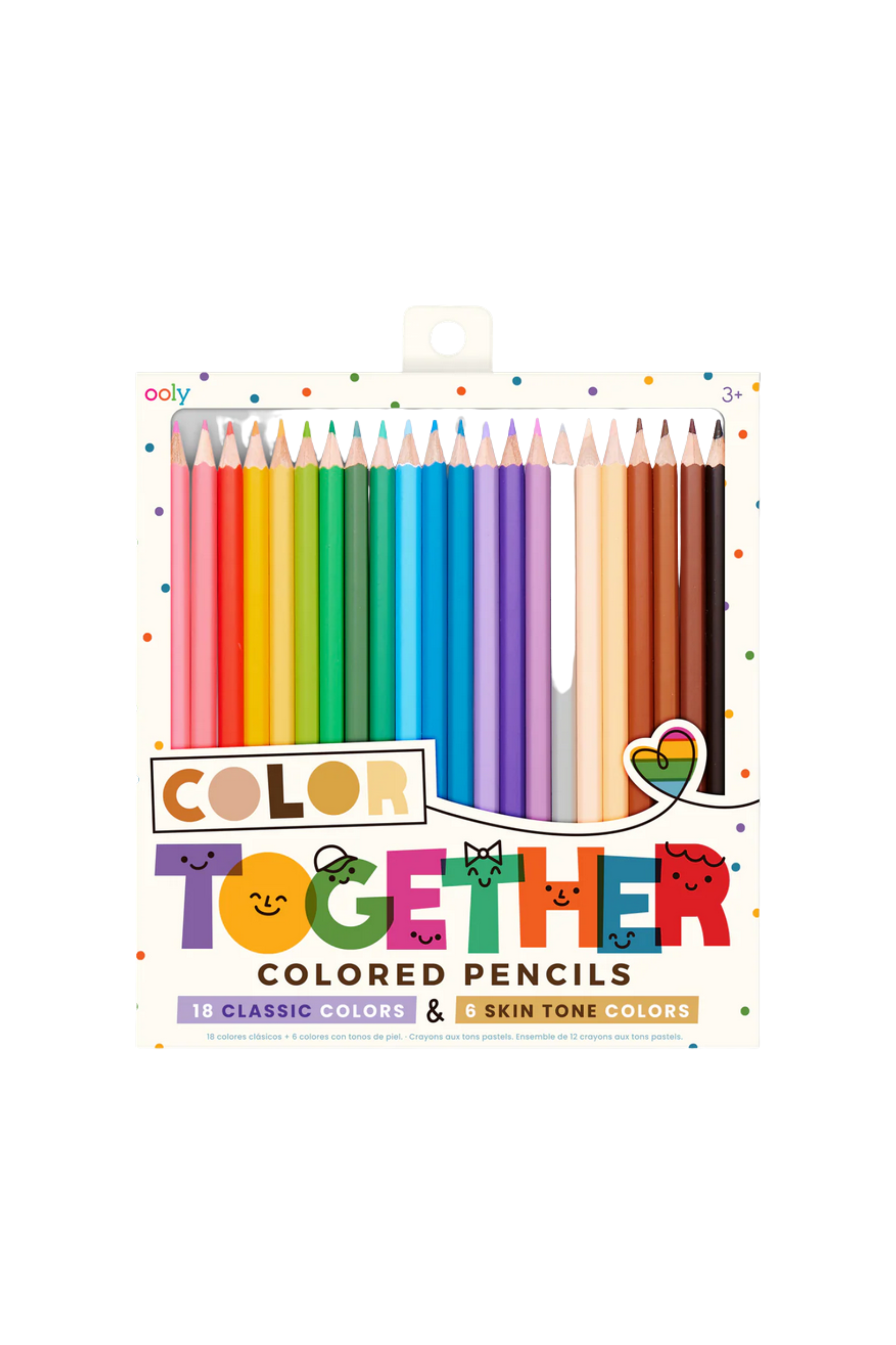 Grab your friends, your family, your teachers, or your neighbors and get ready to color together. This 24 pack of colored pencils features 18 classic shades, plus 6 skin tone colored pencils so you’ll have plenty of color for everyone! With the Color Together Colored Pencils you can create more detailed and realistic art. The 18 classic shades allow you to color anything you can dream up, while the 6 skin tone shades allow you to draw yourself and anyone else in a way that best represents them. The 24 pack of colored pencils is perfect for all art projects large and small, so grab a friend and any of the OOLY sketchbooks, and get ready to color together! Suitable for ages 3 and up.
