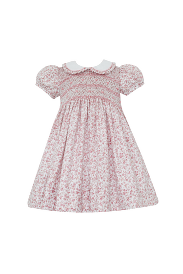 Anavini - Pink Roses Liberty Floral Twill Smocked Dress
