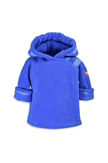 A great baby jacket! Fleece with front wrap, Velcro closures, and top cinch hood.