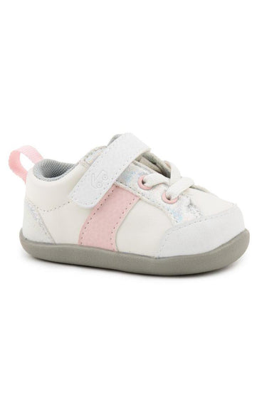 Retro inspired yet right on trend, our Connor court-inspired first walker is ready for fun. Feet stay fresh on the inside and protected on the outside thanks to recycled mesh lining, an extra durable rubber toe cap, and flexible, durable outsole.