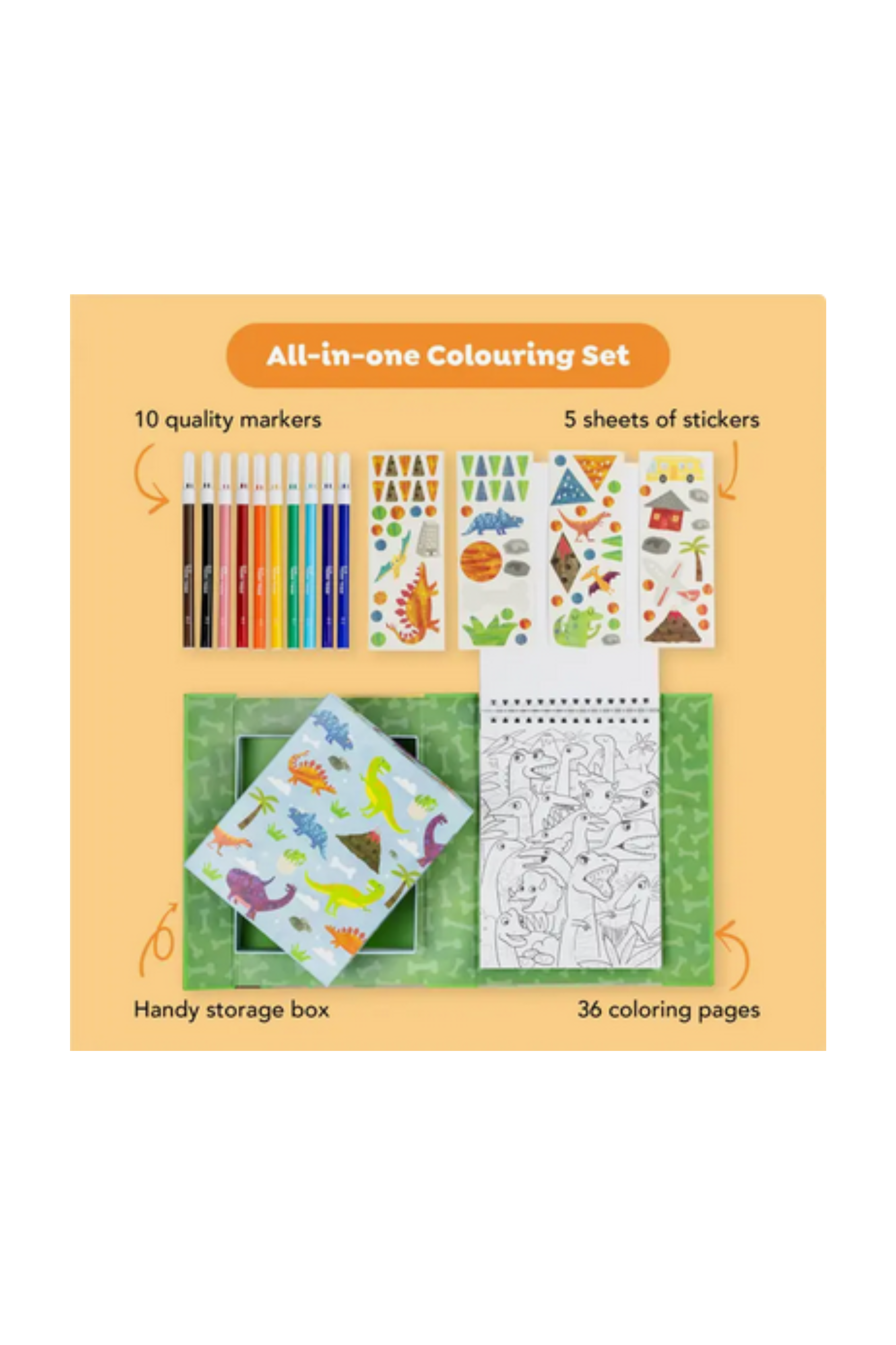 Explore, colour and decorate the Jurassic period with this Dinosaurs coloring and activity set!