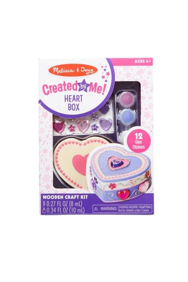 - Includes wooden heart box, 12 gem stickers, 4 pots of paint, paintbrush, glitter glue, and white glue