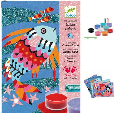 4 boards, 9 sand pots, 2 glitter tubes, 1 tool, instructions.