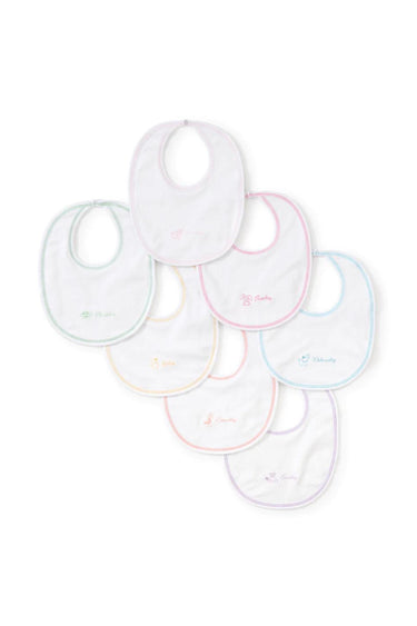 Our Everyday Bibs Set makes the perfect gift for the precious little one in your life! Each set comes with 7 bibs embroidered with a unique design for each day of the week. Made from 100% cotton and comes available in two color sets.