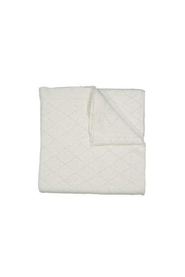 This knit baby blanket is oh so sweet! It is made out of soft knit material with a classy diamond pointelle design throughout the weave and seed knit edges. Perfect for a baby bassinet, carriage, or swaddling your precious bundle of joy.