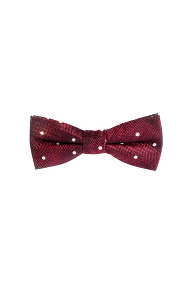 Introducing our maroon and white polka dot bow tie for boys! Perfect for adding a touch of sophistication to any outfit, this bow tie is the ultimate accessory for a dapper young gentleman. The high-quality material ensures long-lasting wear, while the stylish design is sure to turn heads. Elevate his look with this must-have accessory! 100% silk.