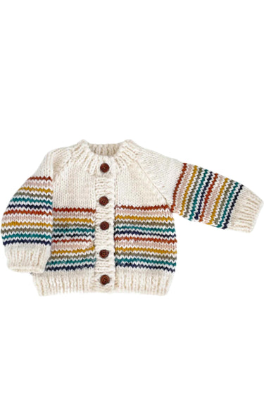 Stash away a rainbow of memories in this adorable rainbow striped cardigan. This cozy knit cardigan features soft neutral colors making it the perfect layering piece your little one is sure to love!
