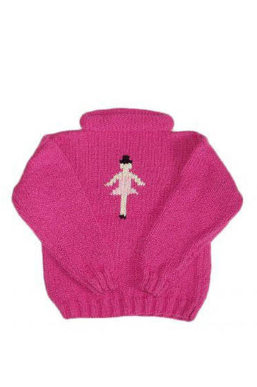 This cozy pink rollneck sweater features an adorable ballerina motif. 100% cotton; hand-knit with love.
