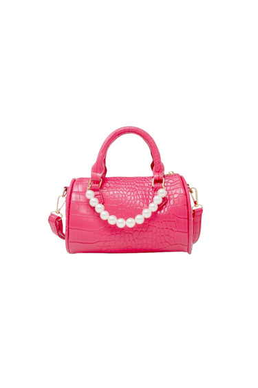 Crocodile Pearl Duffle Handbag - Dark Pink