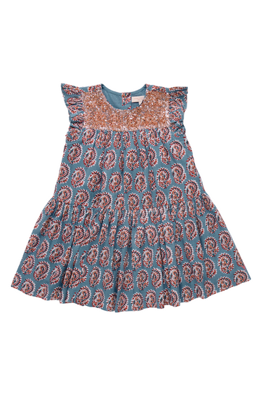 Pink Chicken - Blue Paisley Fiona Ruffle Dress