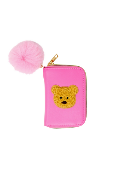 Teddy Pom Pom Zip Wallet: Hot Pink