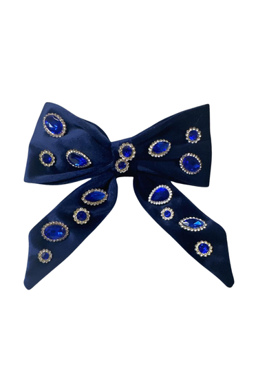 BARI LYNN - ACC - VELVET JEWELED BOW TAIL BOW CLIP - NAVY