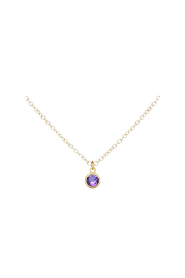 Shine bright with our Gold Birthstone Necklace! Featuring a stunning amethyst gem, this necklace is perfect for February birthday girls. Add a touch of elegance to any outfit with this beautiful accessory.