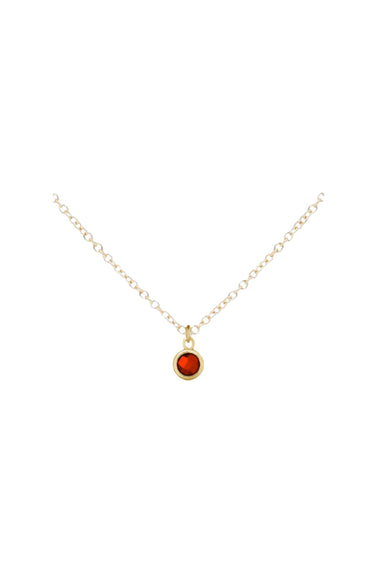 Shine bright with our Gold Birthstone Necklace! Featuring a stunning garnet gem, this necklace is perfect for January birthday girls. Add a touch of elegance to any outfit with this beautiful accessory.