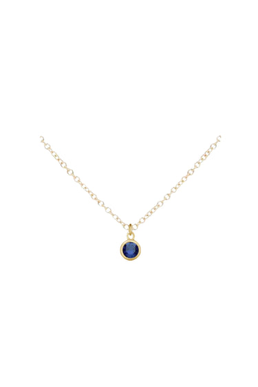 Shine bright with our Gold Birthstone Necklace! Featuring a stunning sapphire gem, this necklace is perfect for September birthday girls. Add a touch of elegance to any outfit with this beautiful accessory.