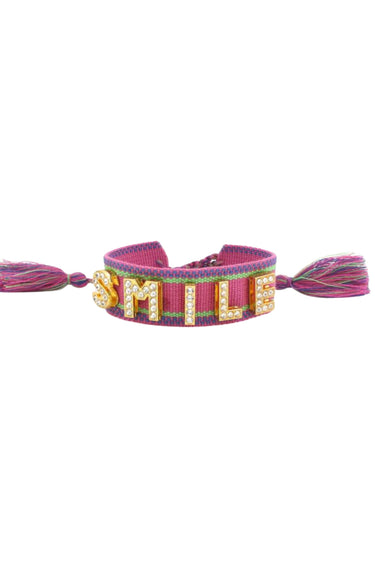 Bari Lynn - "Smile" Stone Charms Woven Bracelet