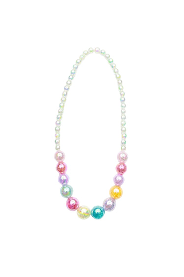 Cute beaded necklace for girls with pretty irredescent beads. It's a perfect addition to any outfit, colors great for spring, summer and kids mardi gras!