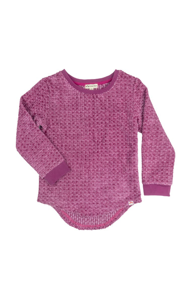 Introducing our Laurel Top in Vintage Berry, a stylish addition to any girl's wardrobe. This top features a unique longer back hemline for added flair and berry-colored cuffing and neckline hemline for a pop of color. Made with high-quality materials, it's both comfortable and fashionable, perfect for everyday wear or special occasions.