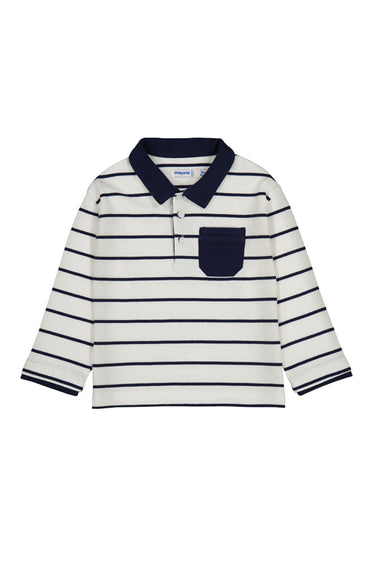 L/S Polo Cream and Navy Stripe