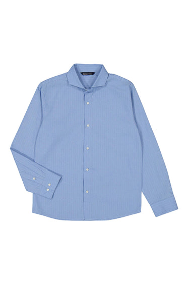 Indulge in luxurious fashion with our Micro Print Long Sleeve Shirt. Crafted from 100% cotton, this light blue button down shirt for boys exudes timeless elegance. The micro print adds a touch of sophistication, making it the perfect addition to any wardrobe.
