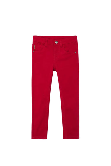 Elevate your little one's wardrobe with our Basic Red Slim Fit Pant. These slim fit pants feature a classic 5-pocket design for a stylish and versatile look. Perfect for any occasion, these pants offer both comfort and sophistication for your youngster.