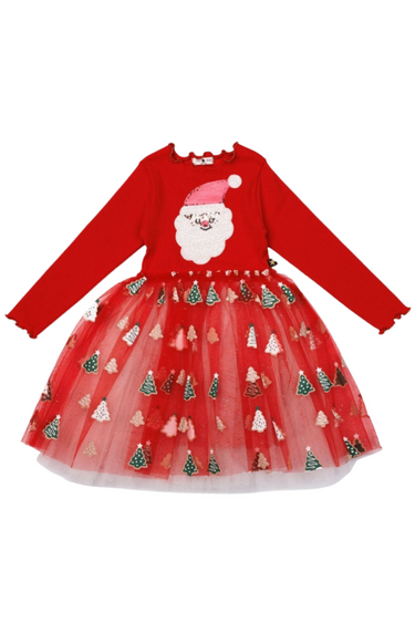 This Red Santa Tutu Dress is perfect for the holiday season. With its long sleeve design and red tulle skirt, it's both festive and stylish. Let your little one make a statement in this exclusive Petite Hailey dress.