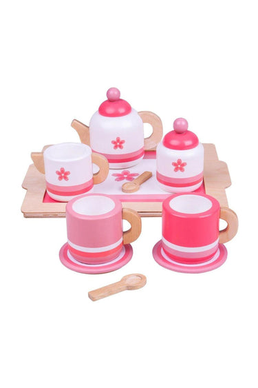 Little ones can put their hosting skills to work with this wooden Pink Tea Set and Tray. This wooden playset has everything they need to host the perfect tea party: a teapot with lid, 2 wooden cups and saucers, sugar pot with lid, 2 wooden spoons, a milk jug and tray. This adorable tea service set encourages creative and imaginative role play sessions, develops social skills and improves dexterity.