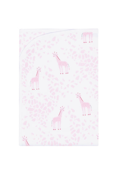 Introducing our luxurious Pink Giraffe Print Blanket for babies. Adorned with charming giraffes on a white background with Pink accents, it's a must-have for a sophisticated nursery.