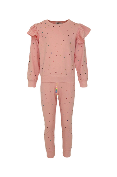 Lola And The Boys - Rainbow Crystal Pink Ruffle Jogger Set