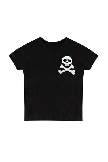 Indulge in the daring and edgy style of our Pirate Skull Tee. Made from soft, black fabric, this boys' t-shirt features a striking pirate skull graphic.