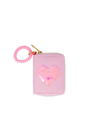 Let your little one shine with our Sequin Heart Spiral Strap Wallet! Featuring a big sequin heart on the front, this wallet is fun and functional with its full zip around closure and multiple compartments. Plus, the spiral telephone color strap adds a playful touch.