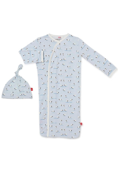 Our gowns are designed for all those nap and nighttime diaper changes (at least 8 times a day!). Smart magnetic fasteners and no over-the-head design gets your baby dressed in no time. Each gown comes with a matching hat. Pair with coordinating blankets or bibs for the perfect shower gift. Machine wash as directed.