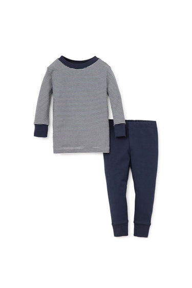 Drift into dreamland in our essential striped two piece pajama set. Made from super-soft Pima cotton, your precious baby is sure to get a good night's sleep!