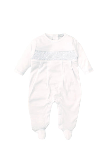 Kissy Kissy - Charmed Smocked White/Light Blue Footie