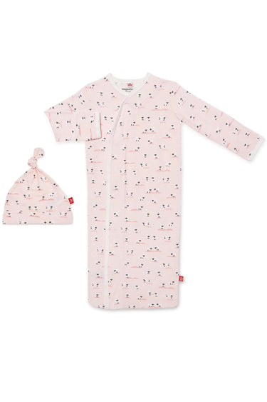 Our gowns are designed for all those nap and nighttime diaper changes (at least 8 times a day!). Smart magnetic fasteners and no over-the-head design gets your baby dressed in no time. Each gown comes with a matching hat. Pair with coordinating blankets or bibs for the perfect shower gift. Machine wash as directed.