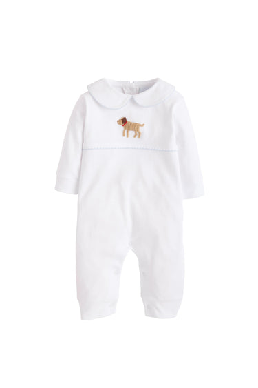Gorgeous and playful, this Lab Crochet Playsuit is crafted with 100% cotton and detailed with a blue trim and embroidered Labrador. The perfect companion for your little one's adventures, it's a luxurious treat sure to make any child feel special.