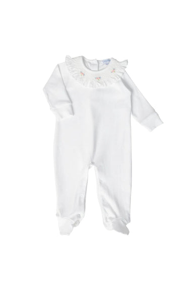Princess Footie is soft and comfortable to snuggle your sweet little princess. The ruffle neck and delicate embroidery give a cute feminine touch, and the soft, breathable fabric made of 100% pima cotton makes it an essential wardrobe piece.