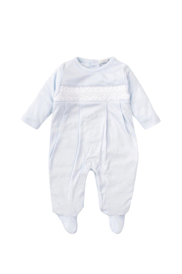 Our classic footie is embellished with hand smocking and a soft pima cotton texture.