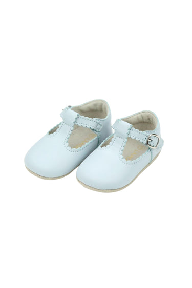 Designed in a beautiful blue these t-strap scalloped crib shoes are sure to look adorable on your little one!