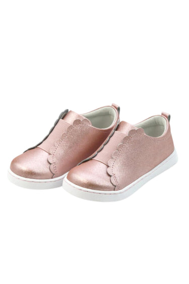 Scalloped and sweet, sister to the Caroline, the the Phoebe is the first slip on sneaker in our collection. We love the matching elastic for a semi-sporty look.